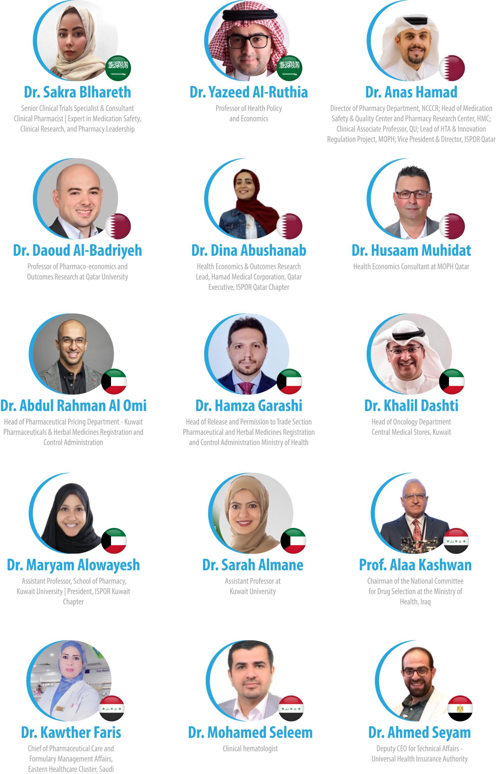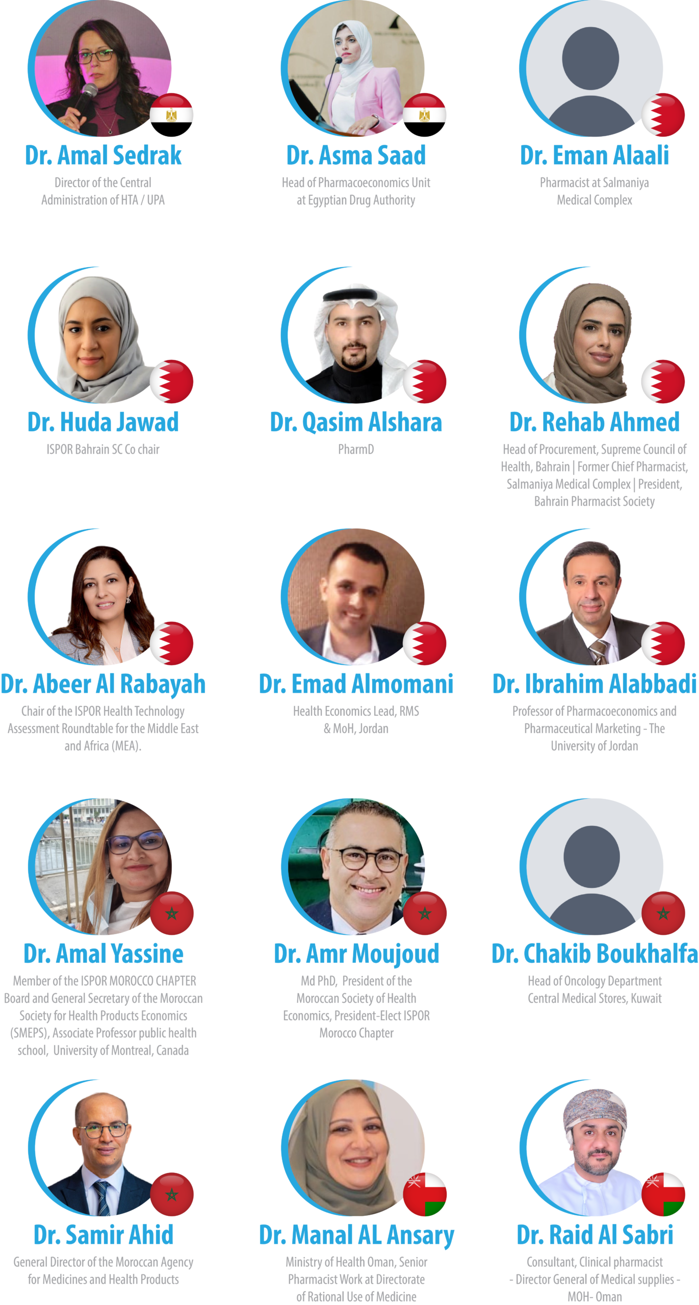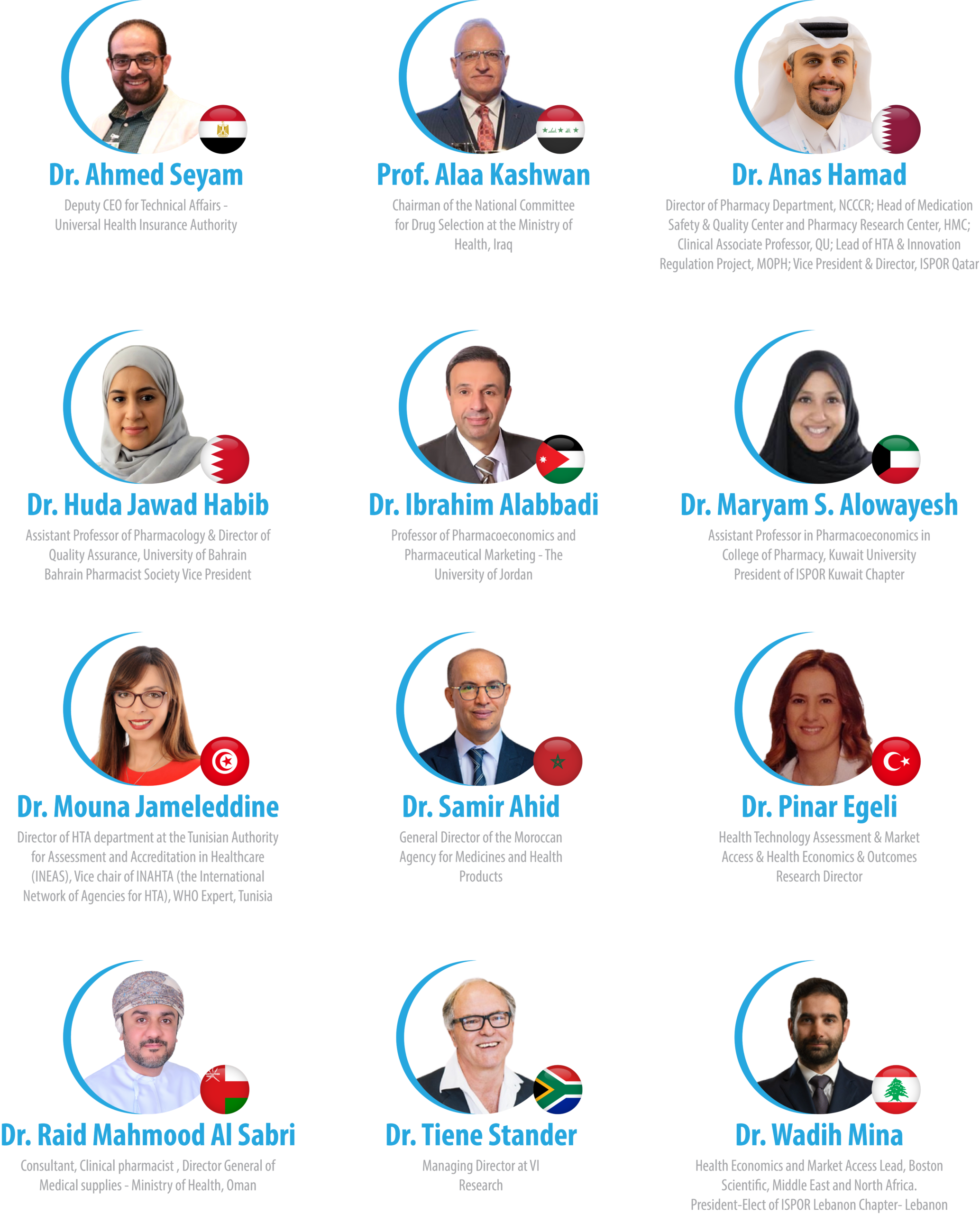 ISPOR UAE Chapter President and Conference Chair, Expert Advisory Board Panel, WHO, Associate Professor at Sharjah University, EMR Pharma Forum President, Vice President of FIP International, President of Pharmacists association